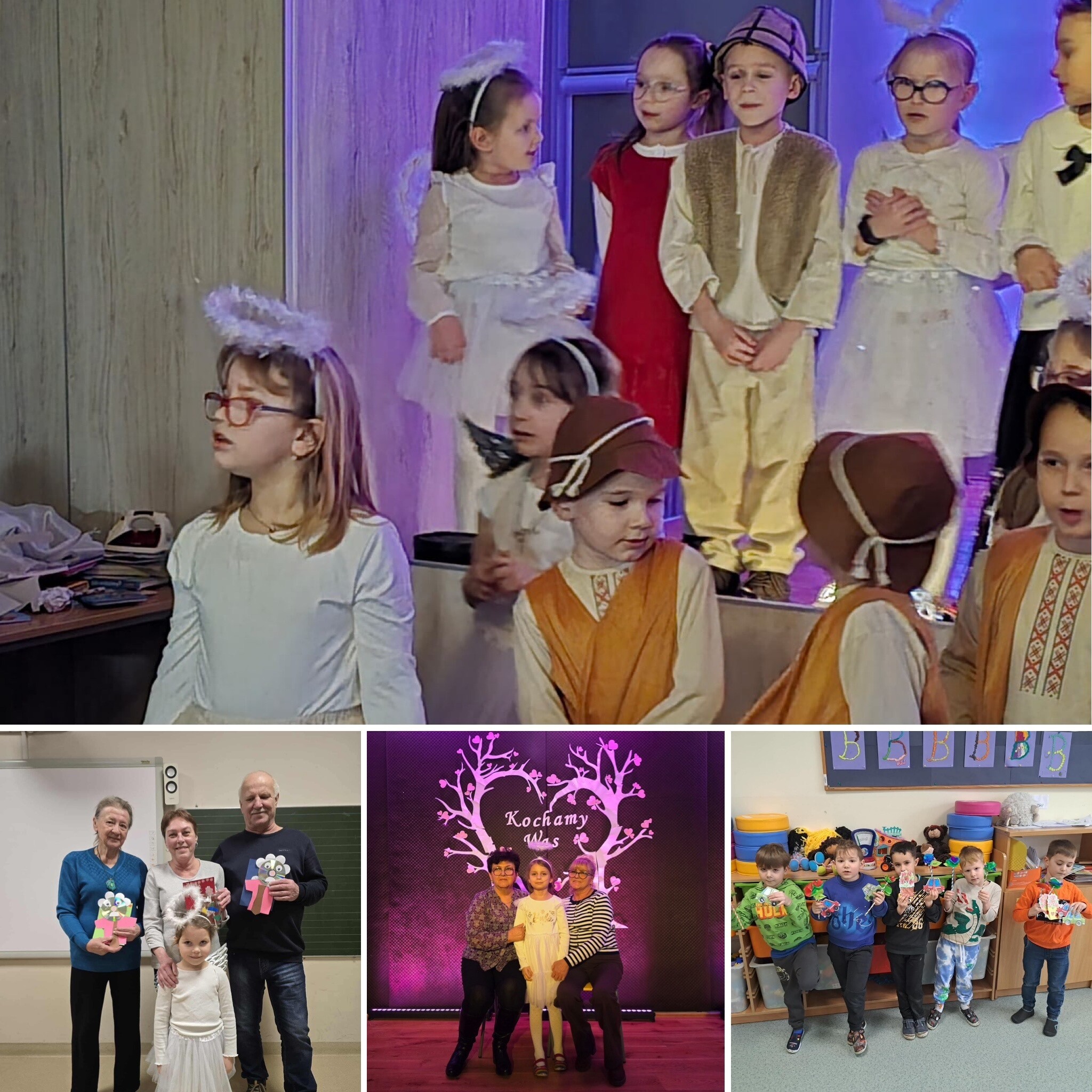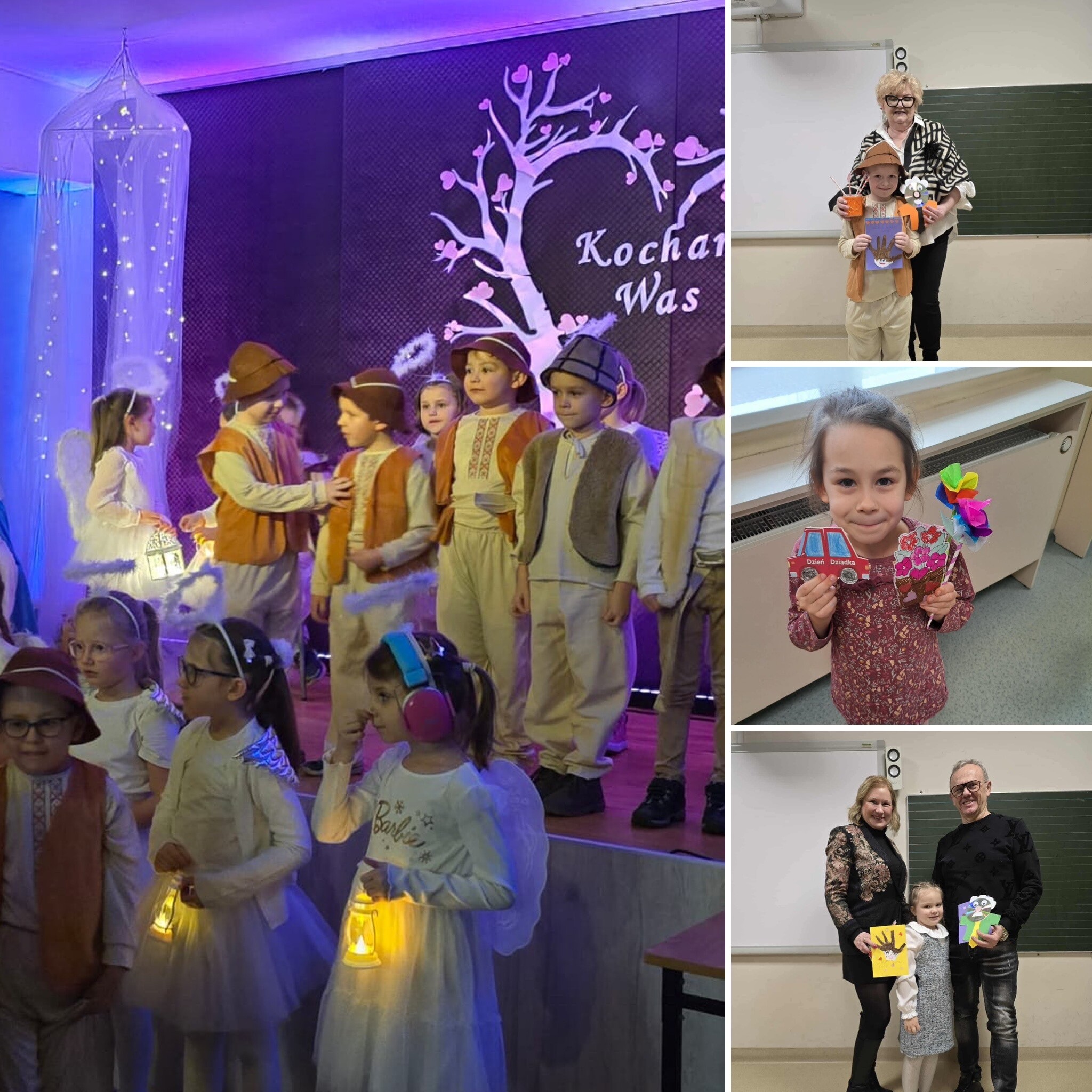 Uczniowie klasy 0a, 0b, 0c zaprosili swoje Babcie i Dziadków na specjalnie przygotowany występ artystyczny. W programie znalazły się jasełka , a także piękne piosenki, wiersze dedykowane ukochanym gościom. Mali artyści z ogromnym zaangażowaniem i radością prezentowali swoje umiejętności, wkładając w występ całe serce. Gromkie brawa były najlepszym dowodem na to, jak bardzo doceniony został trud i zaangażowanie dzieci. Po części artystycznej przyszedł czas na wręczenie upominków oraz serdeczne przytulasy, które dopełniły ten wyjątkowy dzień.