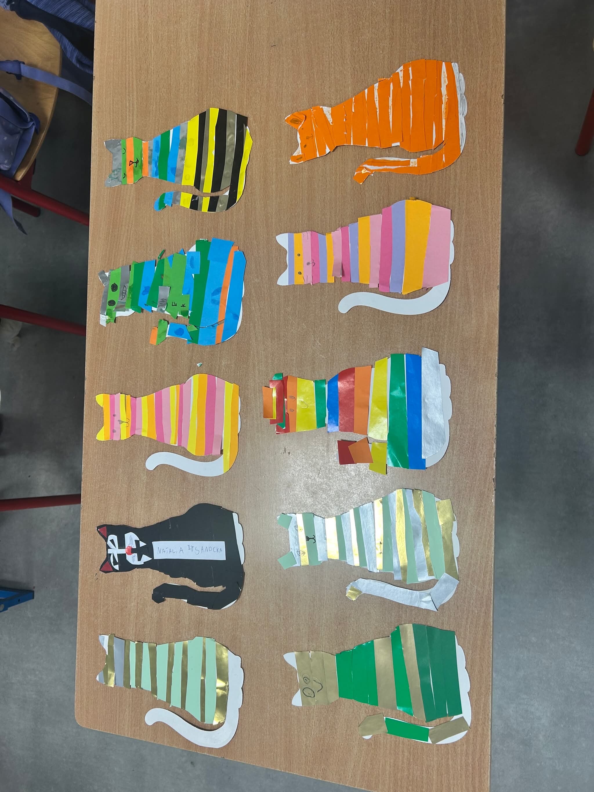 W naszej szkole z klasami 1D, 2A, 2D oraz Kołem Terapii Ręki (klasy 0a,0b,0c) obchodziliśmy wyjątkowe święto – Dzień Kota. Najważniejszym punktem wydarzenia była bajka terapeutyczna o nieśmiałym kotku, który bał się odezwać, wstydził się swoich pomysłów i często chował się w kącie. Podczas wspólnej lektury uczniowie poznali historię małego bohatera, który – krok po kroku – uczył się odwagi, proszenia o pomoc i wiary w siebie. Opowieść stała się inspiracją do rozmowy o emocjach, nieśmiałości i sposobach radzenia sobie z tremą. Dzieci z dużym zaangażowaniem dzieliły się swoimi doświadczeniami oraz pomysłami, jak wspierać kolegów i koleżanki w trudnych chwilach. Okazało się, że każdy z nas może być czasem takim „nieśmiałym kotkiem” – i to zupełnie w porządku. Po części literackiej przyszedł czas na twórczą ekspresję. Uczniowie wykonali przepiękne prace plastyczne przedstawiające koty w różnych odsłonach – wesołe, zamyślone, kolorowe, a nawet bajkowo-magiczne. W ruch poszły kredki, farby, bibuła i wyobraźnia. Powstały koty z tekturek i kolorowych papierów, przestrzenne prace z wykorzystaniem gazet, wycinanek i kartonu oraz barwne portrety kocich przyjaciół z użyciem farbek / kredek/pisaków. Każda praca była wyjątkowa – tak jak jej autor.