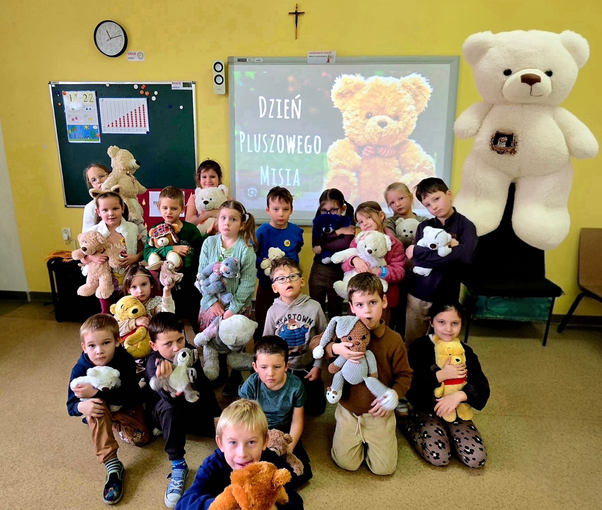 W zerówkach obchodziliśmy Światowy Dzień Pluszowego Misia, a wraz z nim w szkole pojawiło się mnóstwo mięciutkich, pluszowych przyjaciół. Nasi najmłodsi uczniowie poznali historię pluszowego misia- jak powstał pierwszy pluszak i skąd wzięło się to wyjątkowe święto. Dzieci przyniosły swoje ukochane misie, które towarzyszyły im przez cały dzień. Powstały też piękne prace plastyczne pełne misiowych motywów. Uczniowie poznali różnice miedzy niedźwiedziem polarnym a brunatnym, a także odgadywali misie z różnych bajek. Realizowaliśmy również projekt „Razem w różnorodności”. Nie zabrakło misiowej uczty – owocowych szaszłyków polanych pysznym miodem. To był dzień pełen radości, ciepła i przytulnej atmosfery, który nasi najmłodsi uczynili wyjątkowym.