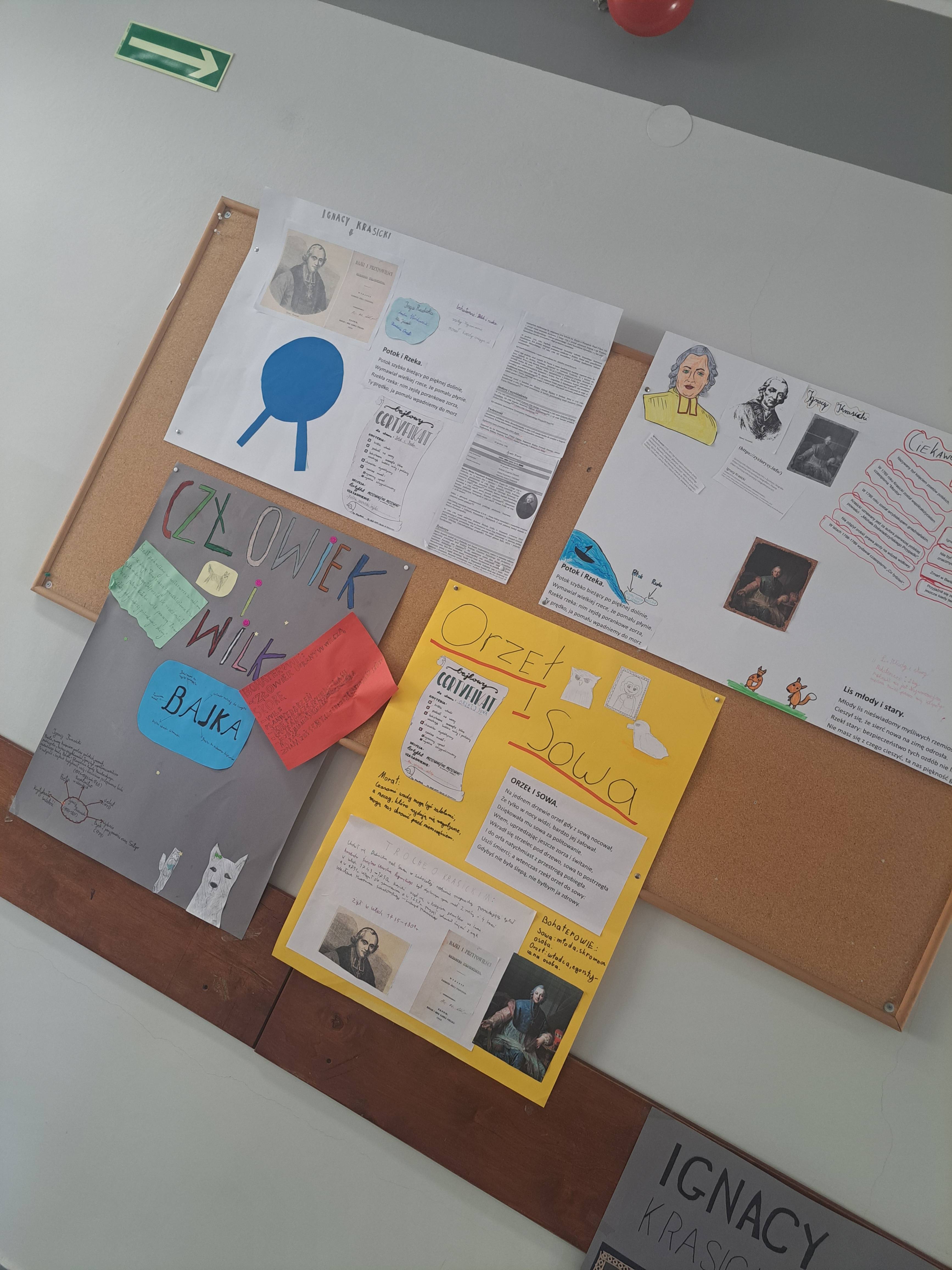 5 listopada obchodzony jest Dzień Postaci z Bajki. W naszej szkole jak zwykle dużo się z tej okazji działo. W klasach 4-7 cały tydzień w dniach 2-7 listopada poświęcony został postaci Ignacego Krasickiego i jego utworom. Wszystkie klasy na lekcjach języka polskiego poznawały postać oświeceniowego poety oraz omawiali wybrane dla nich bajki. Swoją wiedzę umieszczali na plakatach lub w fantastycznych lapbookach, a na lekcjach plastyki wykonali wspaniałe rysunki do poznanych bajek. Uczniowie klas ósmych w ramach przygotowania do egzaminu obejrzeli wystawę prac młodszych koleżanek i kolegów, wykonując przy tym specjalną, bajkową kartę pracy.