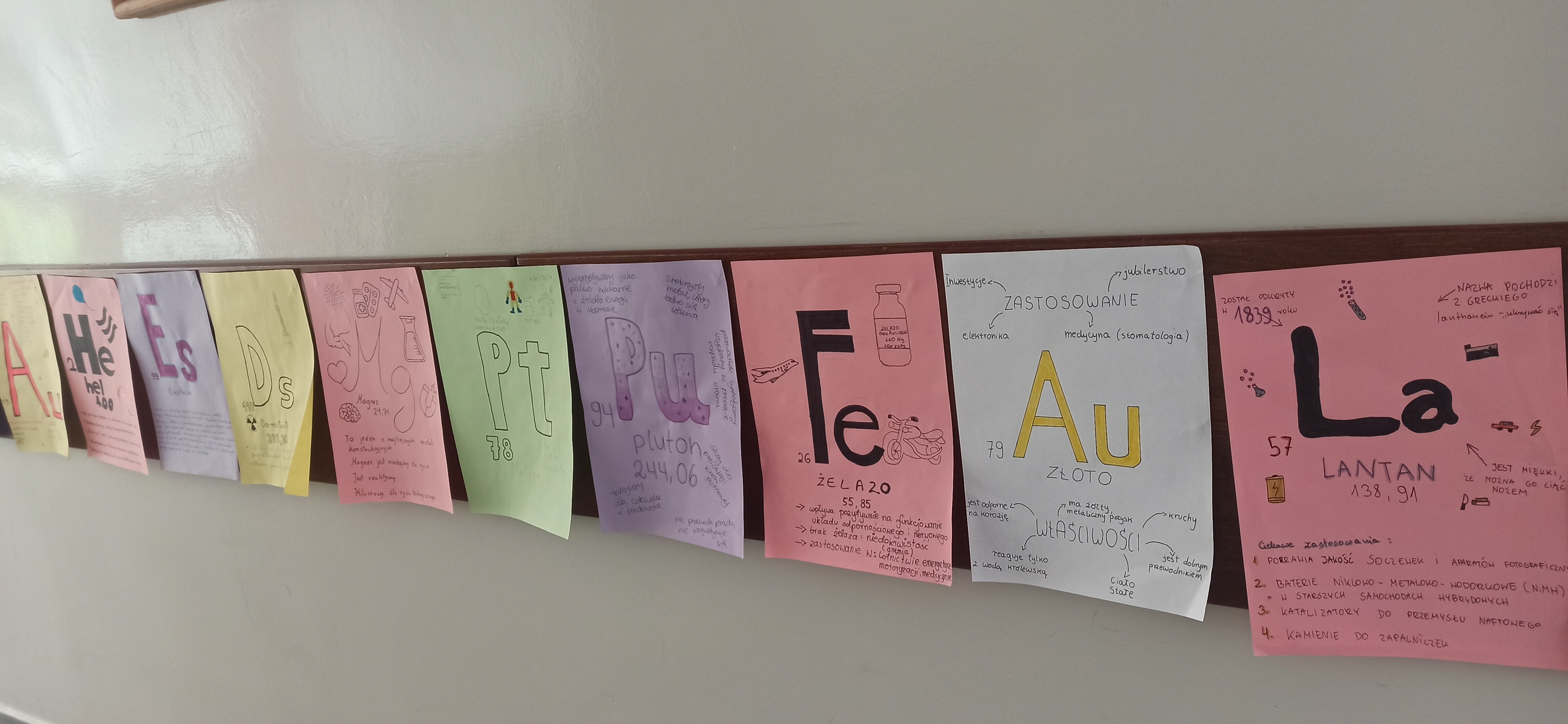W ramach wydarzenia uczniowie przygotowali plakaty przedstawiające wybrane pierwiastki chemiczne. Następnie prezentowali je przed swoją klasą. Po prezentacjach plakaty zostały powieszone na korytarzu szkolnym, aby wszyscy uczniowie mogli je obejrzeć i dowiedzieć się ciekawych informacji o różnych pierwiastkach.