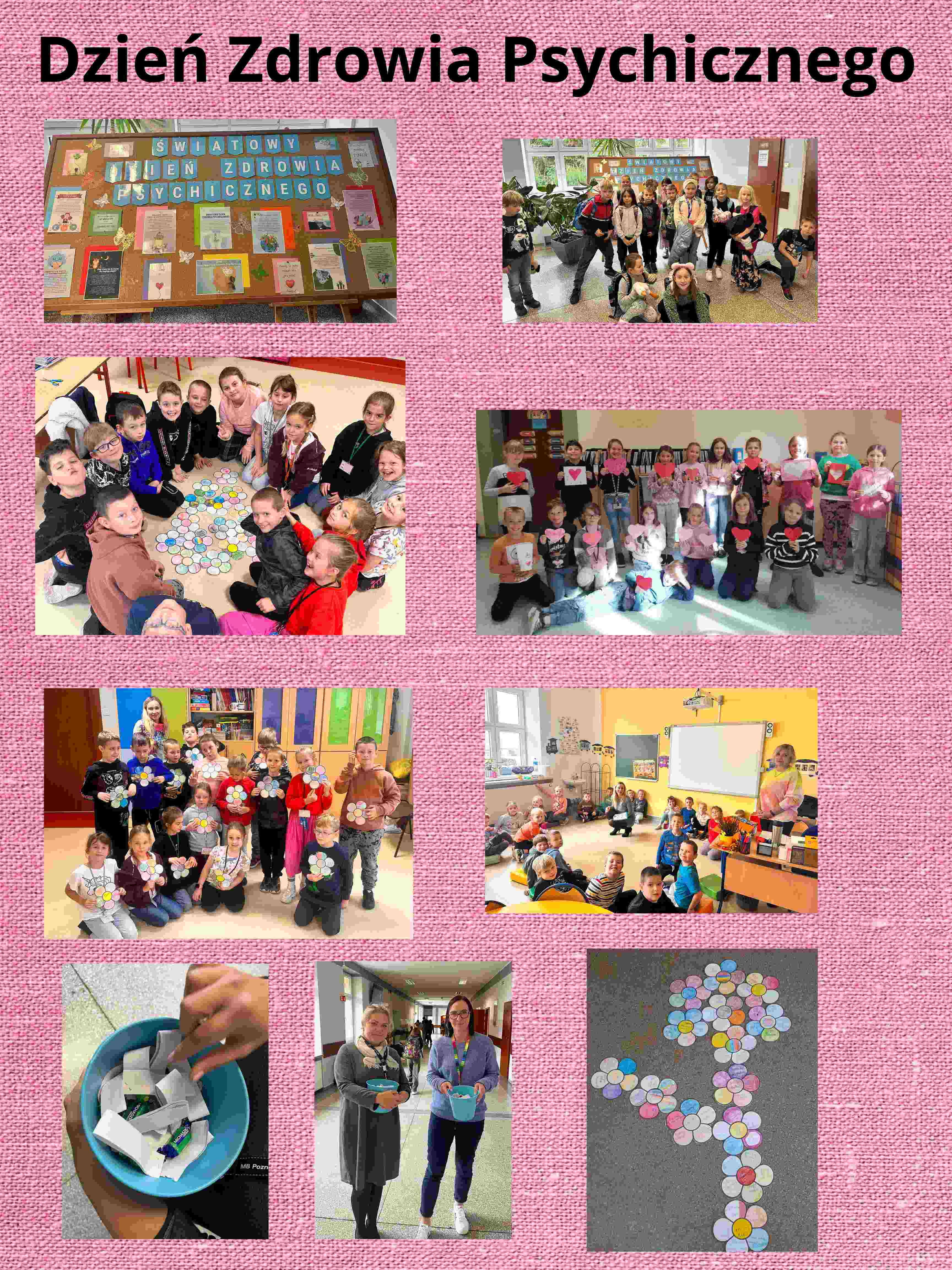 10 października obchodziliśmy Światowy Dzień Zdrowia Psychicznego ustanowiony w 1992 roku przez Światową Federację Zdrowia Psychicznego. Z tej okazji w klasach odbyły się zajęcia profilaktyczne pod hasłem „Zdrowie w głowie”. Uczniowie mieli okazję poznać zawody związane ze zdrowiem psychicznym oraz sposoby dbania o dobre samopoczucie. Na korytarzu szkolnym pojawiła się okolicznościowa gazetka oraz słodka niespodzianka z pozytywnymi cytatami.