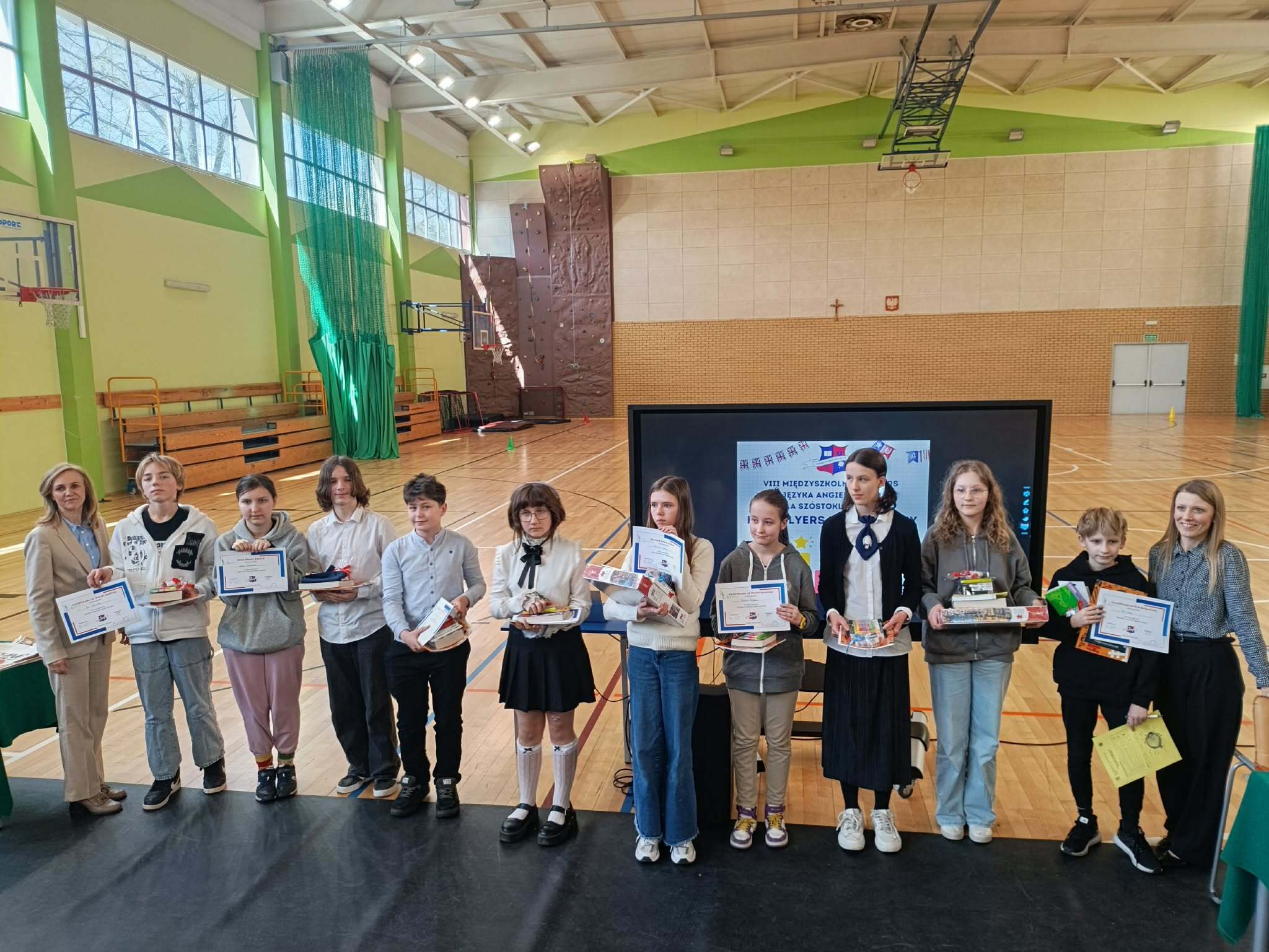 We wtorek 21 kwietnia reprezentacja naszej szkoły w składzie: Aleksandra Leśniowska, Mateusz Przybyła oraz Hanna Zięta wzięli udział w międzyszkolnym konkursie języka angielskiego “High Flyers in Krzesiny”. Konkurs rozpoczął się od oficjalnego powitania przez dyrektora szkoły, następnie odbył się test konkursowy trwający 60 minut. Po teście uczniowie wzięli udział w wykładzie dr Tomasza Skireckiego (wykładowcy UAM) na temat flagi Stanów Zjednoczonych. Po wykładzie nastąpiła przerwa na poczęstunek, a po niej odbył się warsztat językowy o dwujęzyczności przygotowany przez mgr Ewę Tomczak-Łukaszewską i dr Dorotę Jaworską-Pasterską – „Co oczy mówią o dwujęzyczności: przygoda z eye-trackingiem”. W konkursie wzięło udział 50 uczniów z 17 szkół z Poznania i okolic. Poziom konkursu był bardzo wysoki, zagadnienia wykraczały poza poziom szkoły podstawowej. Nasza reprezentantka Hania Zięta zdobyła 7 miejsce. Serdeczne gratulacje!