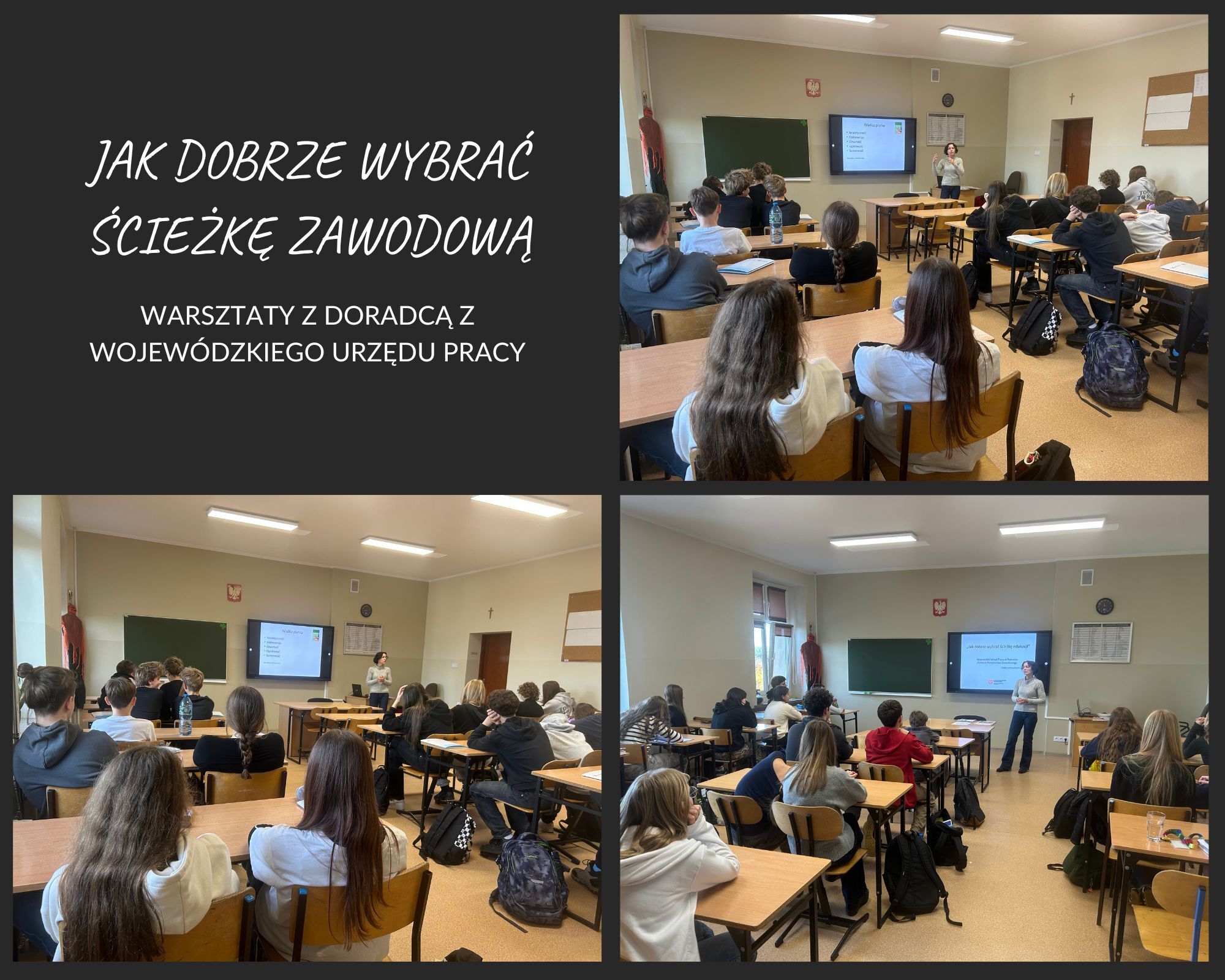W dniach 12-13 listopada 2025 r. w ramach współpracy z Wojewódzkim Urzędem Pracy podczas zajęć z doradztwa zawodowego odbyły się warsztaty przeprowadzone przez doradcę zawodowego p. Małgorzatę Łyskawińską dotyczące wyboru ścieżki kształcenia. Zajęcia odbyły się w formie trzygodzinnych warsztatów w szkole. Podczas zajęć uczniowie mieli możliwość podsumować swoją wiedzę na temat tego co warto wziąć pod uwagę przy wyborze szkoły ponadpodstawowej m. in zainteresowania, predyspozycje, temperament, umiejętności czy stan zdrowia. Zapoznali się również z zagadnieniem rynku pracy i jego ważną cechą zmiennością oraz dowiedzieli się, czym są kompetencje transferowalne i jaka jest ich przydatność przy wyborze drogi zawodowej oraz ścieżki kariery zawodowej. Uczniowie poznali prognozowane zawody przyszłości oraz zawody deficytowe.