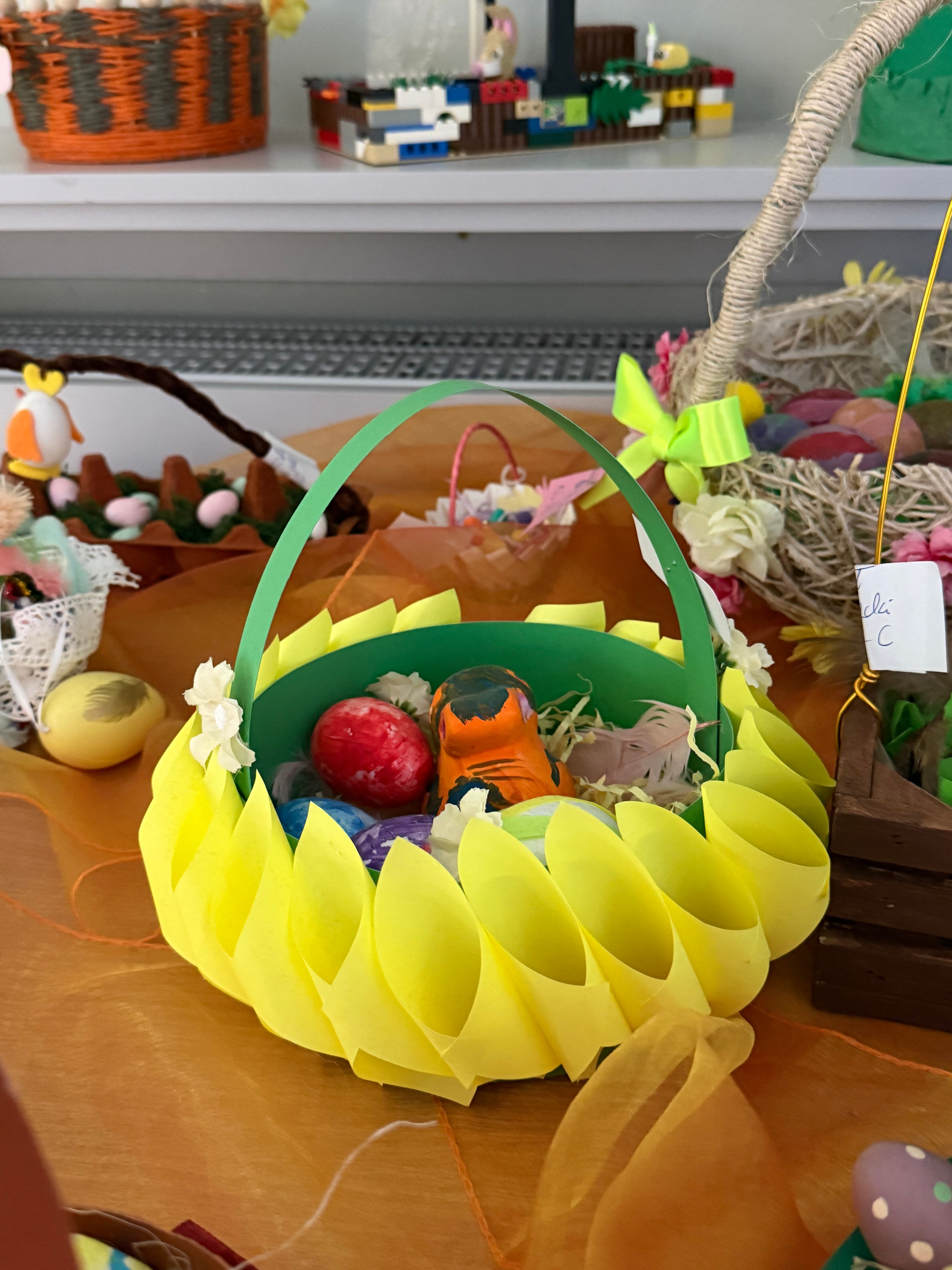 W marcu w naszej szkole odbył się konkurs plastyczno-techniczny pt. „Koszyczek Wielkanocny”, skierowany do uczniów klas 0-3. Zadaniem uczestników było wykonanie przestrzennego Koszyczka Wielkanocnego dowolną techniką i z różnych materiałów. Dzieci wykazały się ogromną pomysłowością i zaangażowaniem. Każdy koszyczek był wyjątkowy i dopracowany w najmniejszych szczegółach. Komisja konkursowa oceniała prace pod względem oryginalności, estetyki wykonania, samodzielności oraz ogólnego wrażenia artystycznego. Wybór najlepszych prac nie był łatwy, ponieważ poziom był bardzo wysoki.