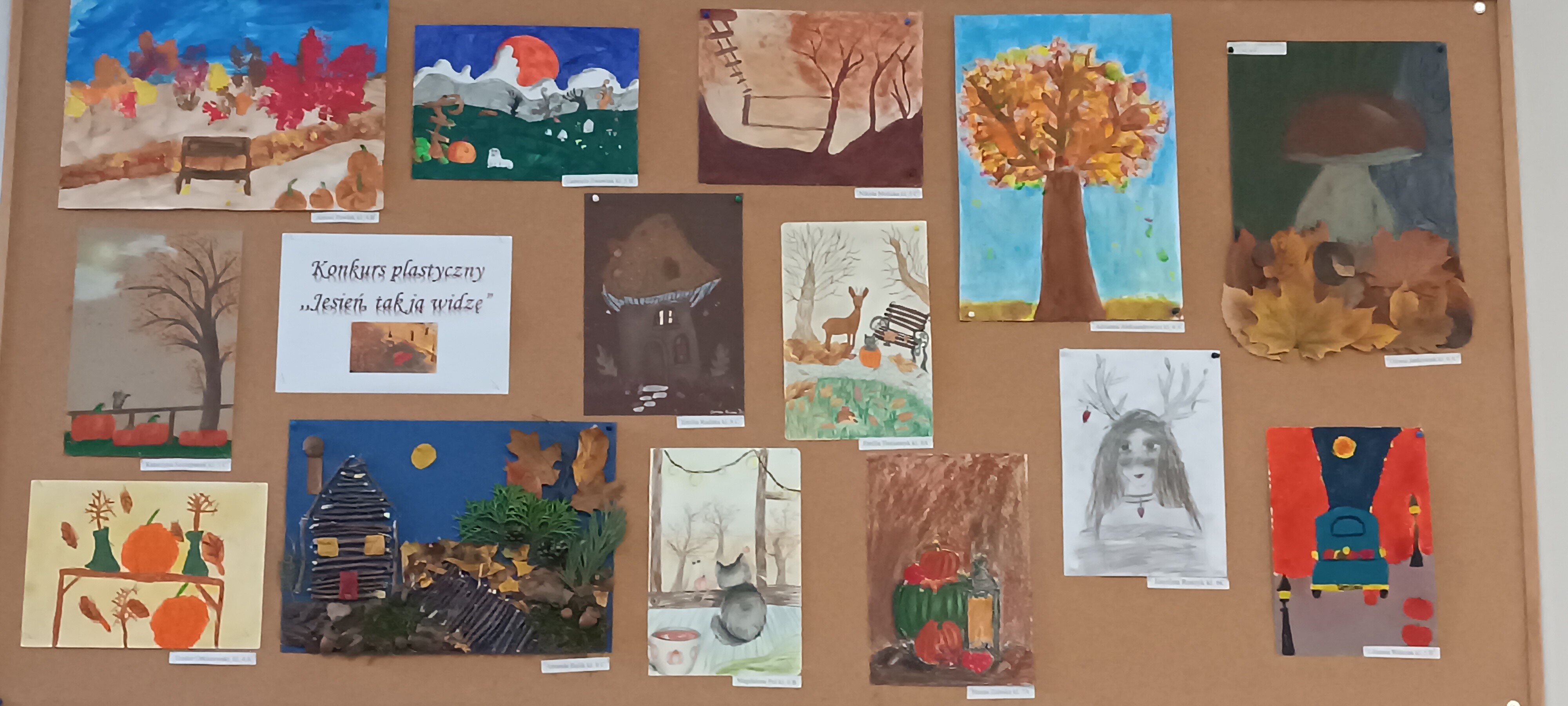 Zakończył się konkurs plastyczny,, Jesień - tak ją widzę”. Uczniowie klas 4-8 wykazali się dużą pomysłowością w interpretacji tego tematu. Lista zwycięzców przedstawia się następująco: