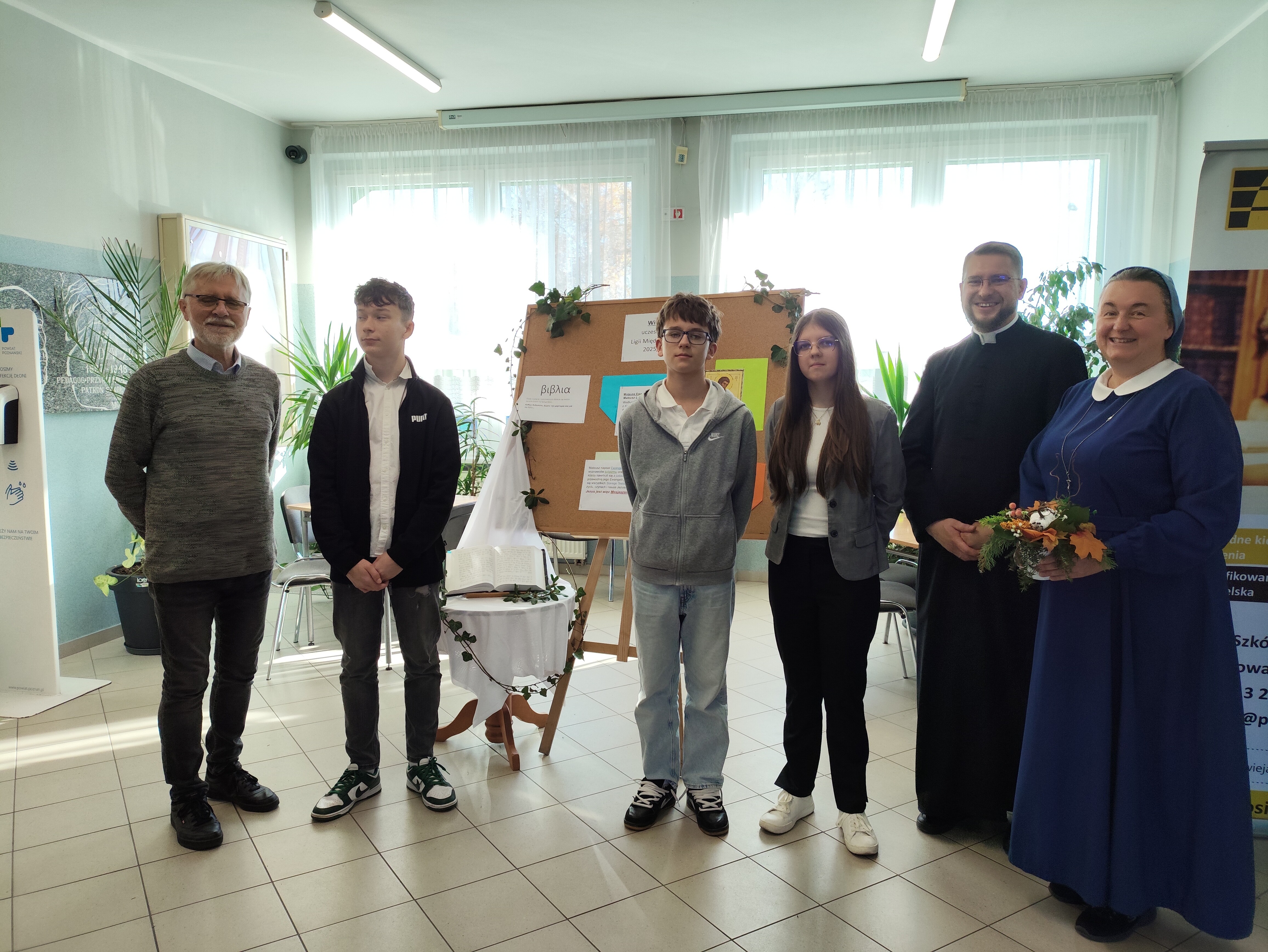 Jak co roku Zespół Szkół im. Adama Wodziczki w Mosinie organizuje Ligę Międzyszkolną, do której przystąpiła także nasza placówka. Pierwszym etapem ligi był konkurs biblijny. Uczniowie z klas VII i VII mieli za zadanie przeczytać Ewangelię według św. Mateusza i odpowiedzieć na 10 pytań konkursowych. Szczególną uwagę musieli zwrócić na spotkania Jezusa z ludźmi na kartach Ewangelii, a także na opisy uzdrowień dokonanych przez Jezusa. Uczniowie, którzy zdobyli największą liczbę punktów, 6 listopada reprezentowali naszą Szkołę w Zespole Szkół im. A. Wodziczki w Mosinie. Tam musieli pochwalić się znajomością nie tylko tekstu Ewangelii wg św. Mateusza, ale także znajomością komentarzy do teksu biblijnego. W ten sposób dostarczyli naszej szkole punktów w zmaganiach ligowych. Kolejne etapy ligowych zmagań z innych przedmiotów jeszcze przed nami.