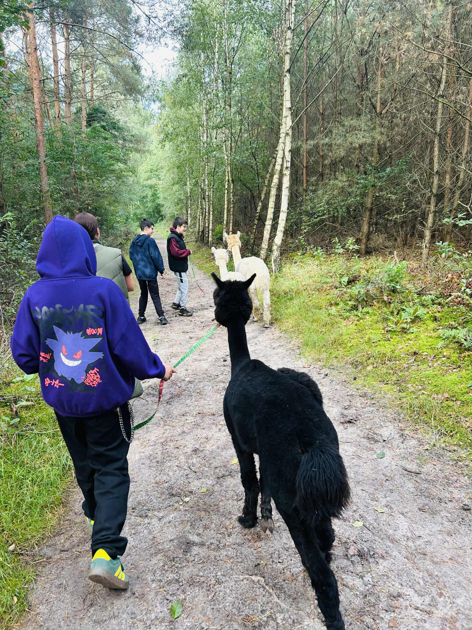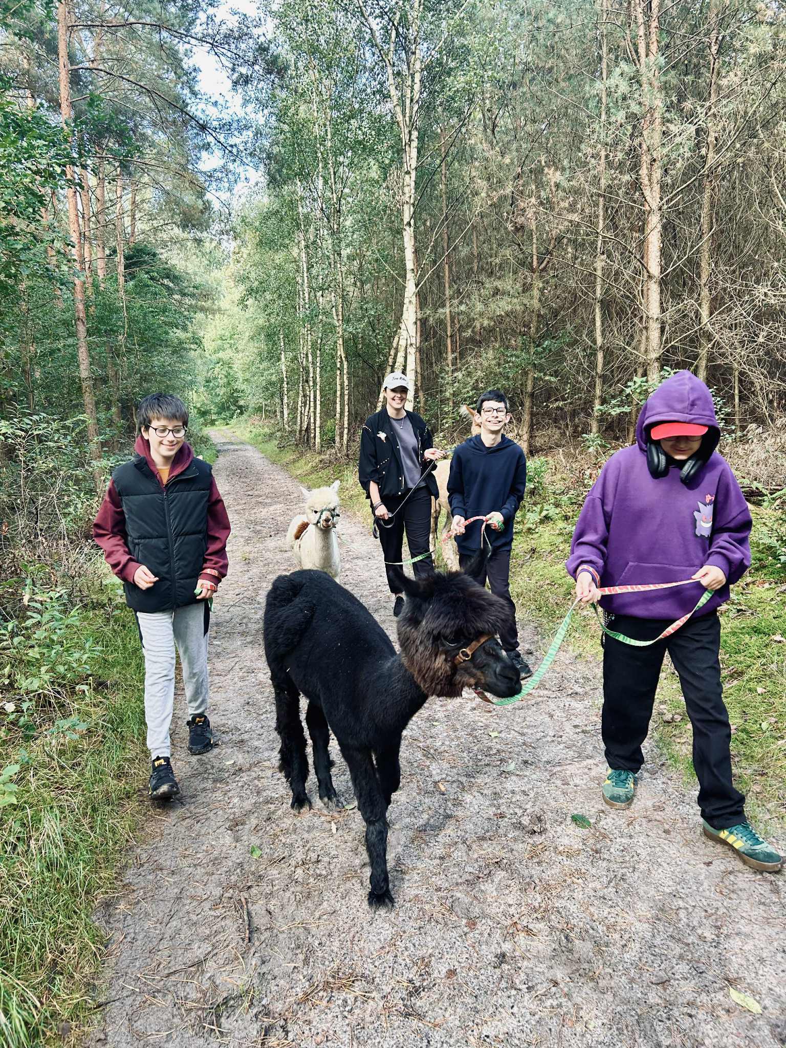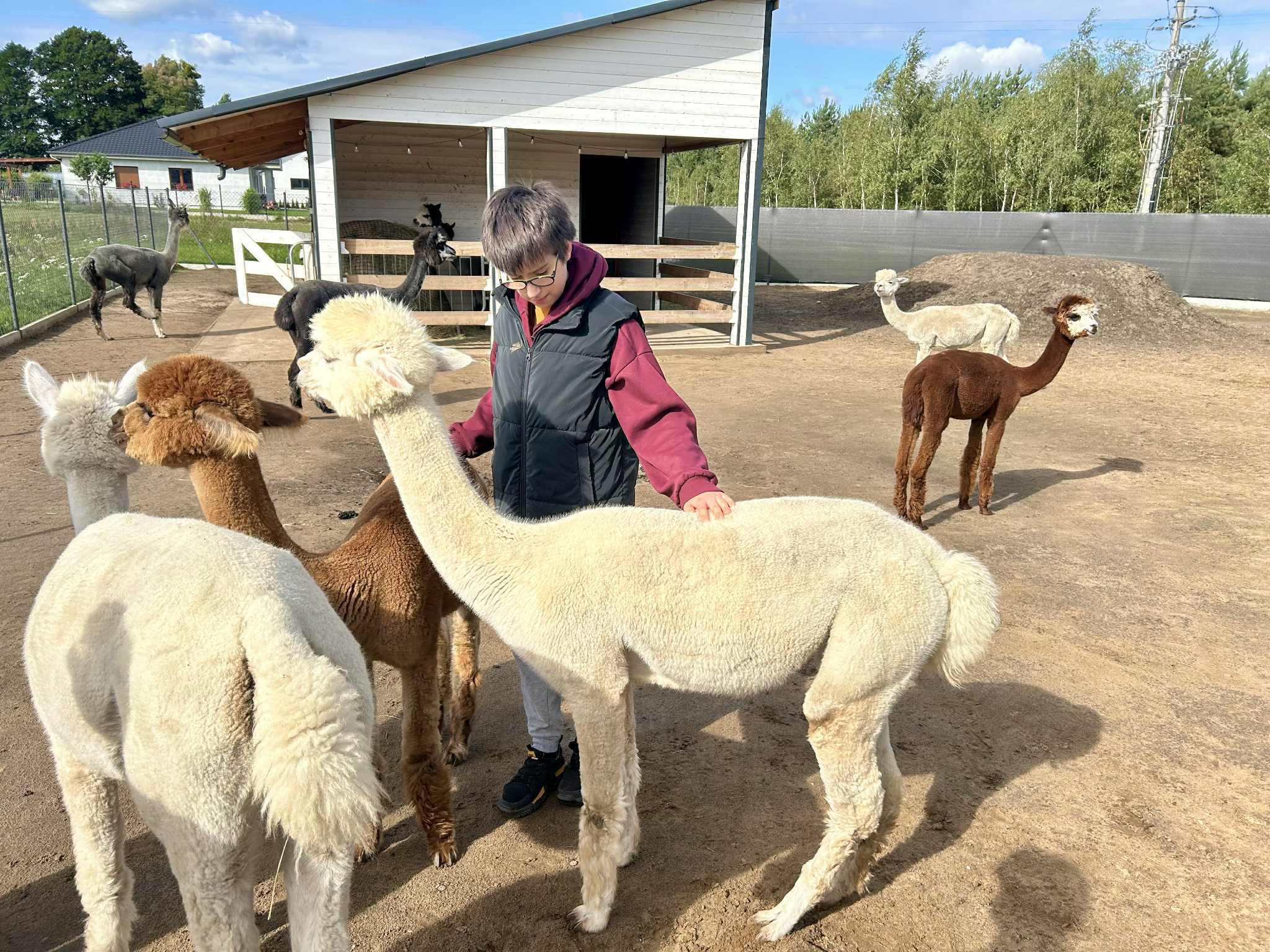Spotkanie z alpakami miało szczególny wymiar wychowawczo-terapeutyczny. Uczniowie mogli obserwować i doświadczać indywidualnych cech temperamentu każdego zwierzęcia, ucząc się tym samym uważności, akceptacji różnorodności oraz dostosowania własnych reakcji. Przykładem była alpaka o imieniu Zygzak McQueen, której żywiołowość i temperament stały się okazją do ćwiczenia cierpliwości, samokontroli oraz adekwatnego reagowania na zmieniające się sytuacje.