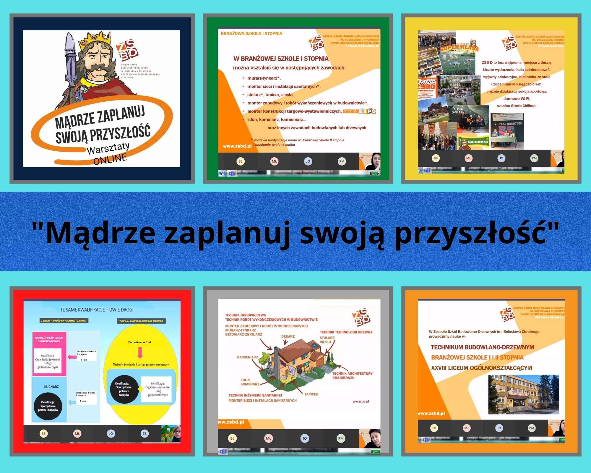 W dniach 14.02.2022 oraz 18.02.2022 Odbyły się warsztaty z doradztwa zawodowego dla klas 8 – „Mądrze zaplanuj swoją przyszłość”. Organizatorem spotkania był Zespół Szkół Budowlano-Drzewnych w Poznaniu. Podczas zajęć online odbył się wykład z zakresu doradztwa zawodowego dotyczący możliwości i form kształcenia po ukończeniu szkoły podstawowej i dalszej kariery edukacyjno-zawodowej. Uczniowie zapoznali się również z ofertą kształcenia ogólnego i zawodowego w XXVIII LO, Technikum Budowlano-Drzewnym i Branżowej Szkole I stopnia. Spotkanie było bardzo ciekawe i z pewnością pomoże w wyborze szkoły.