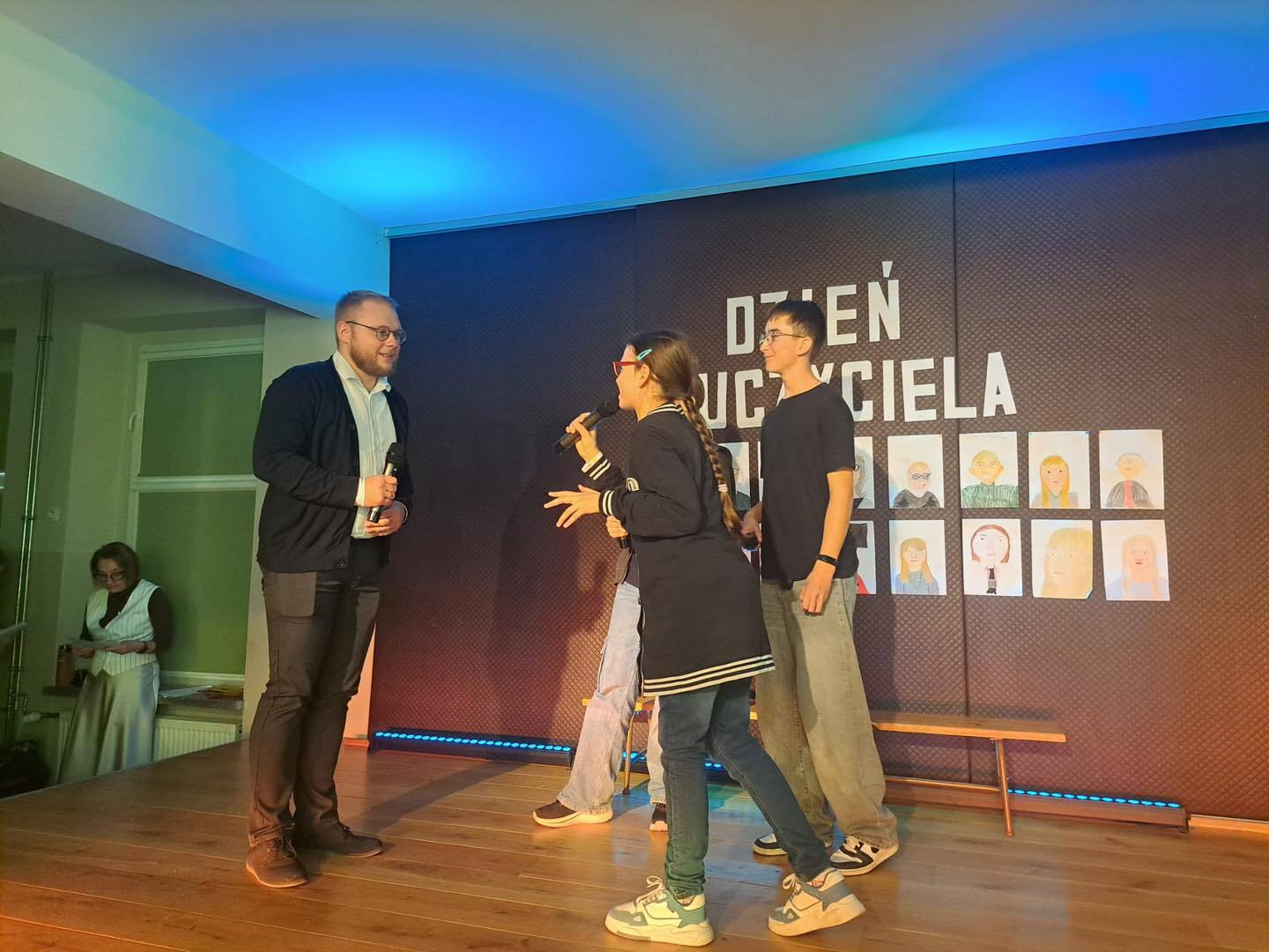 Gościem specjalnym byli uczniowie klasy 2d, którzy pod czujnym okiem pań Anny Antkowiak i Justyny Ratajczak przedstawili maraton różnych układów tanecznych. Ponadto każdy nauczyciel otrzymał od nich dyplom ze słodką nagrodą. Działaniami towarzyszącymi były listy z podziękowaniami dla wszystkich pracowników szkoły, wystawa portretów nauczycieli stworzona przez czwartoklasistów, poczet nauczycieli mosińskiej Jedynki oczami AI oraz lampiony wykonane przez uczniów klas szóstych.
