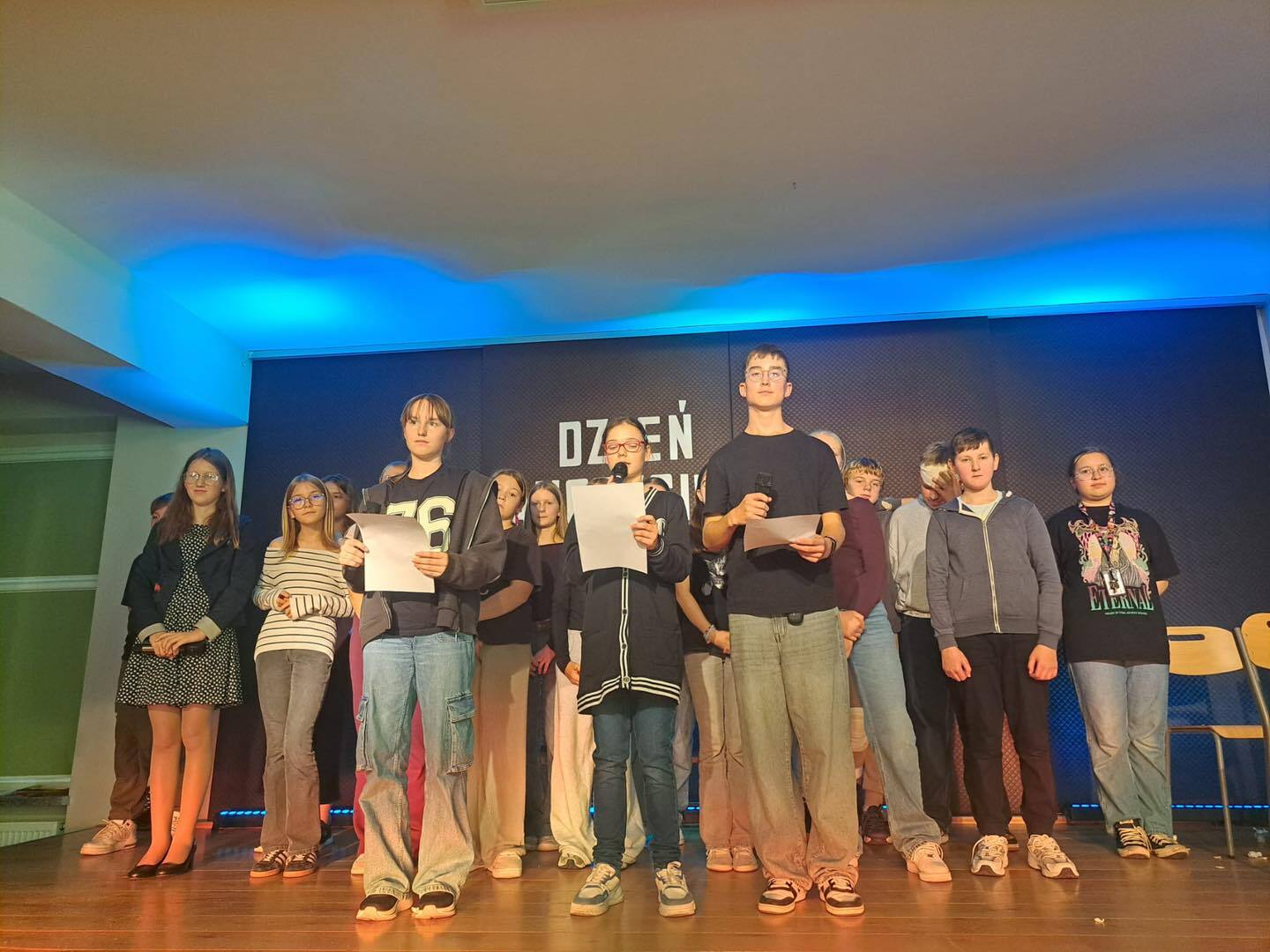 Z okazji Dnia Edukacji Narodowej uczniowie z klas szóstych wraz z wychowawczyniami przygotowali niezwykłe przedstawienie. Okazało się, że Ministerstwo Edukacji w ramach eksperymentu na kilka godzin przekazuje władzę w szkole uczniom. Jak mogłaby wyglądać taka edukacja? W rolę przedstawiciela ministerstwa wcieliła się pani dyrektor Justyna Nojszewska, w roli nauczyciela historii wystąpił pan Mateusz Lewandowski, a pozostałe role wspaniale odegrali uczniowie. Było wiele radości, a salwy śmiechu wybuchały co chwilę. Przyszła również chwila refleksji i prawdziwej wdzięczności dla nauczycieli. Basia Jeżewska (w roli dyrektora szkoły) odczytała list do całego grona pedagogicznego, a Julia Łukaszczyk zaśpiewała piosenkę, którą wzruszyła wszystkich obecnych.