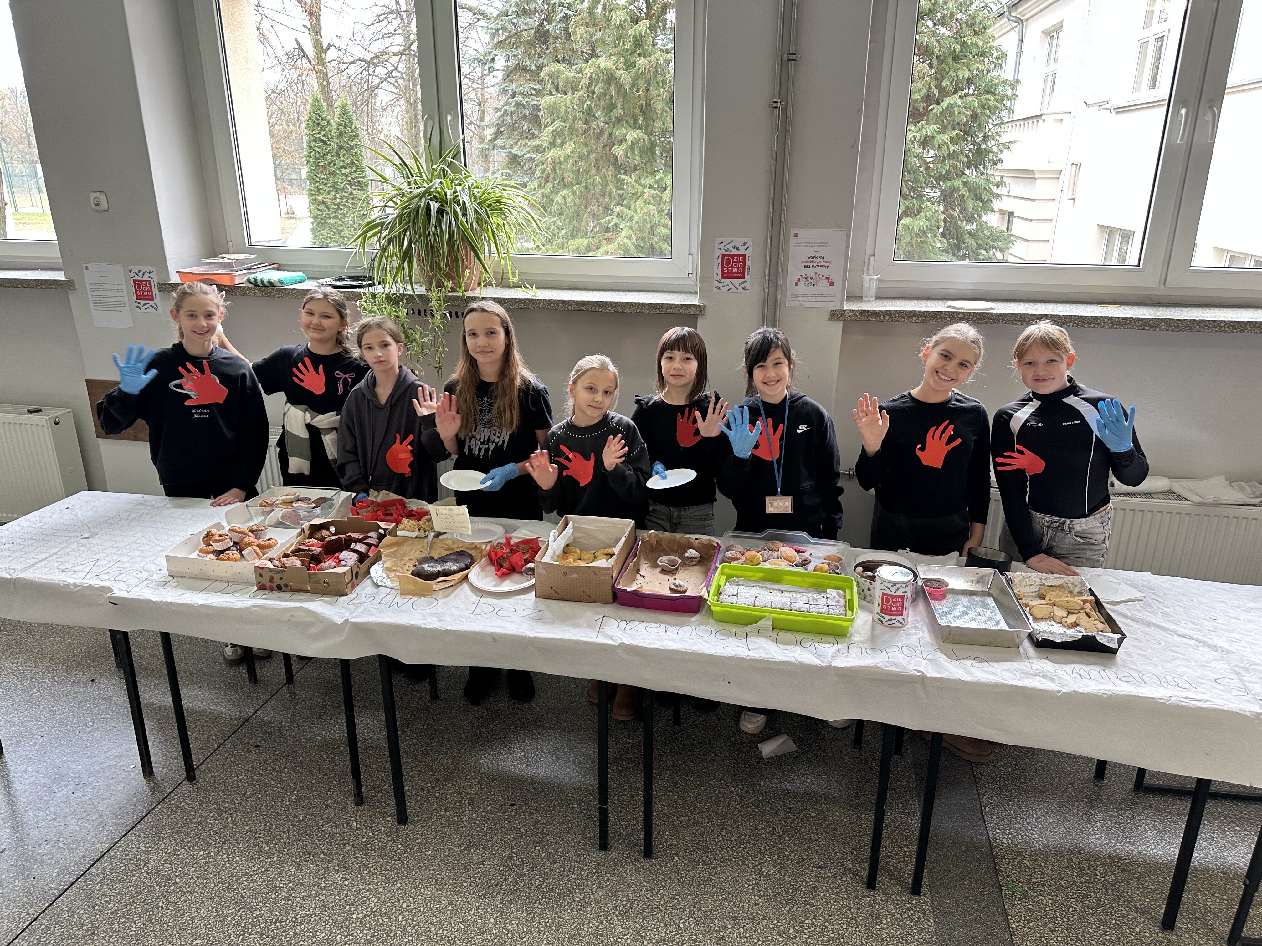 Kulminacją działań był szkolny kiermasz ciast, z którego dochód przeznaczono na pomoc dzieciom dotkniętym przemocą. W akcję zaangażowała się klasa 5a, Samorząd Uczniowski oraz Szkolny Wolontariat — wszyscy, którzy chcieli, by ten gest stał się realnym wsparciem.