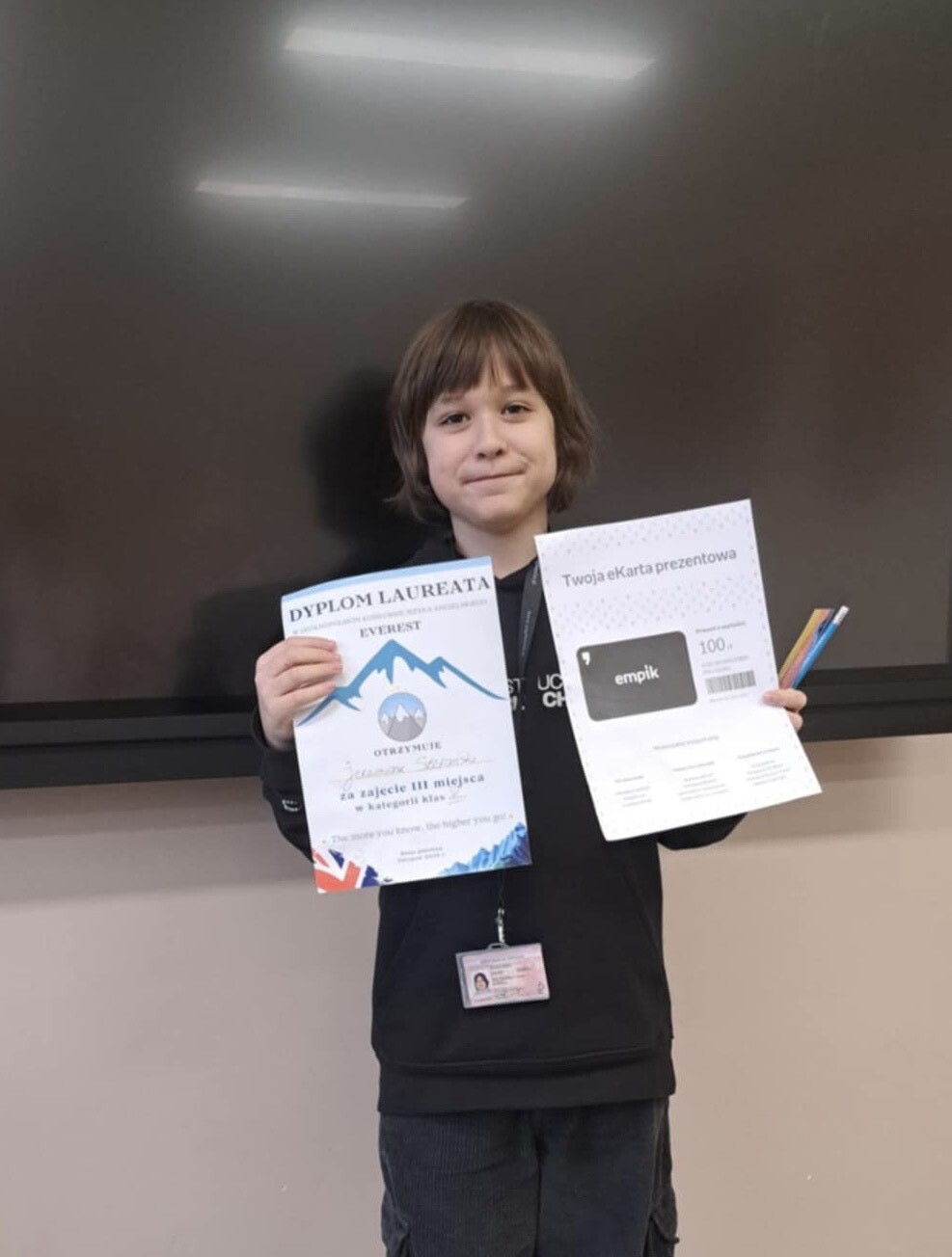 Z ogromną dumą informujemy, iż laureatem, który zajął 3 miejsce w Polsce (!) został Jeremiasz Stefański z klasy 4c, a na wyróżnienie zasługują: Hanna Zięta, uczennica klasy 6, która zajęła 10 miejsce, oraz Wiktoria Karaśkiewicz, uczennica klasy 8, zajęła miejsce 11. Łącznie udział w konkursie wzięło 6243 uczniów z całej Polski. Konkurs cieszył się dużym zainteresowaniem. Był wartościowym doświadczeniem dla wszystkich uczestników, dlatego zachęcamy do brania udziału w nadchodzących edycjach!
