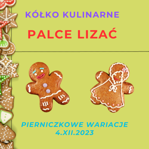 Grudniowe zajęcia kółka kulinarnego „Palce lizać” musiały oczywiście podążać za tradycją, proponując wypiekanie i ozdabianie pierniczków. Wykrojono pierniczki z tysiąca i jednej formy, a po ich upieczeniu uczniowie finezyjnie, kreatywnie i po prostu przepięknie ozdobili świąteczne wypieki. Nasi młodzi adepci sztuki kulinarnej nauczyli się dodatkowo, jak zamiast lukru zrobić… zupę cukrową. I choć pyszne pierniczki szybko znikały z talerzy, udało się także zabrać kilka sztuk do domu, by podzielić się też z najbliższymi. Wiadomo, przez żołądek do serca…