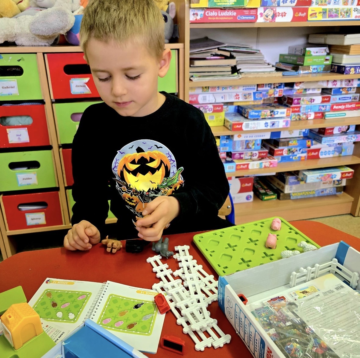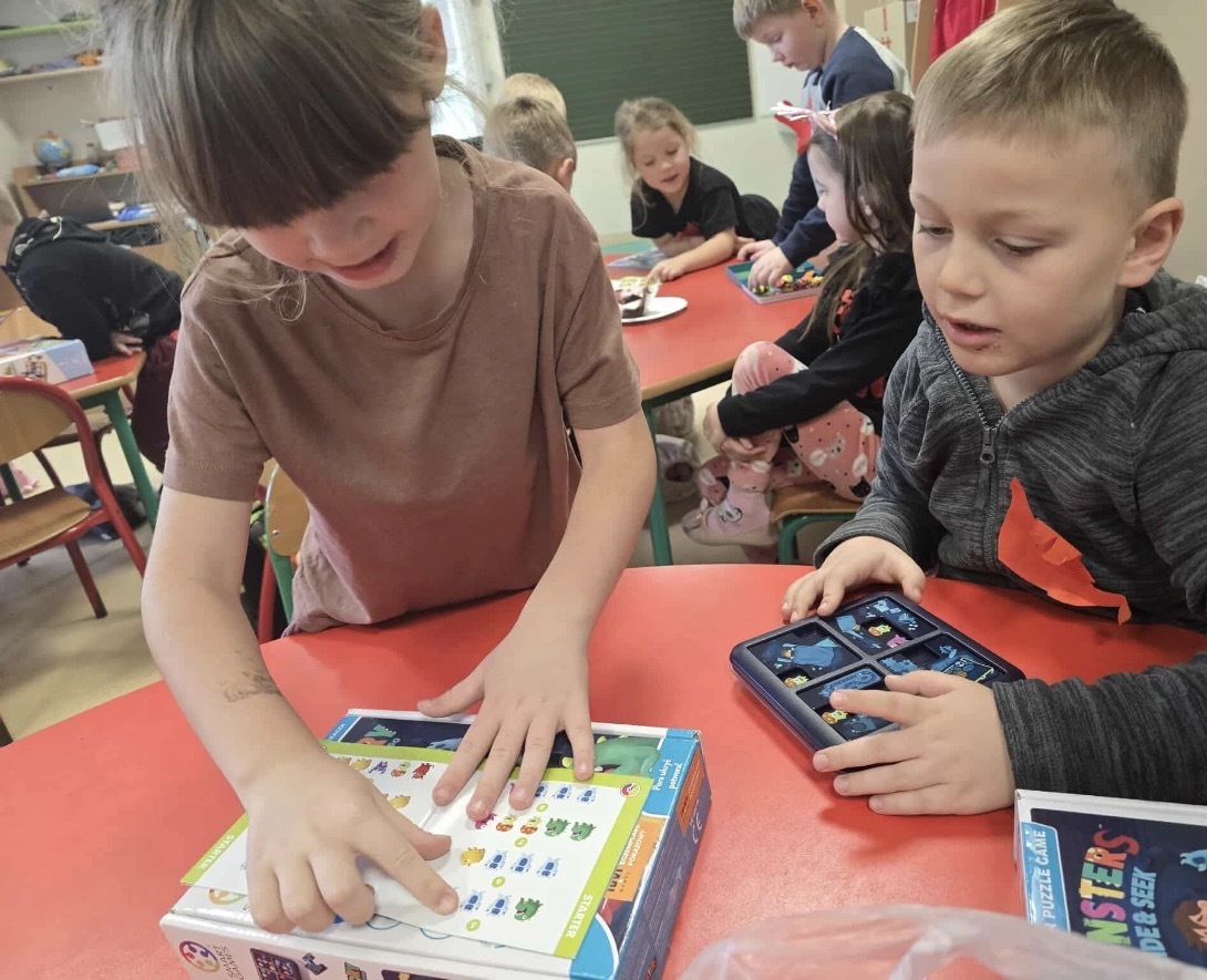 W ostatnim czasie dzieci z oddziałów zerowych uczestniczyły w programie „Szkoła jest SMART”, podczas którego korzystały z różnorodnych gier i łamigłówek logicznych. Celem zajęć było wspieranie rozwoju poprzez naukę połączoną z zabawą. Uczniowie pracowali z grami Smart Games, które umożliwiały rozwijanie spostrzegawczości, myślenia logicznego, nieszablonowego podejścia do zadań oraz umiejętności dopasowywania elementów. Dzieci ćwiczyły również koncentrację, planowanie i podejmowanie decyzji. Gry z serii Smart Sticks wspierały kreatywność, zmysł obserwacji, myślenie naukowe oraz kompetencje społeczne, zachęcając do współpracy i wspólnego szukania rozwiązań. Natomiast gry Helvetiq pomagały rozwijać pamięć, spostrzegawczość i umiejętności społeczne w atrakcyjnej formie. Uczniowie chętnie uczestniczyli w zajęciach i z zaangażowaniem korzystały z gier. Aktywności te realizowały ich potrzeby rozwojowe, dostarczając jednocześnie radości satysfakcji z osiąganych postępów.