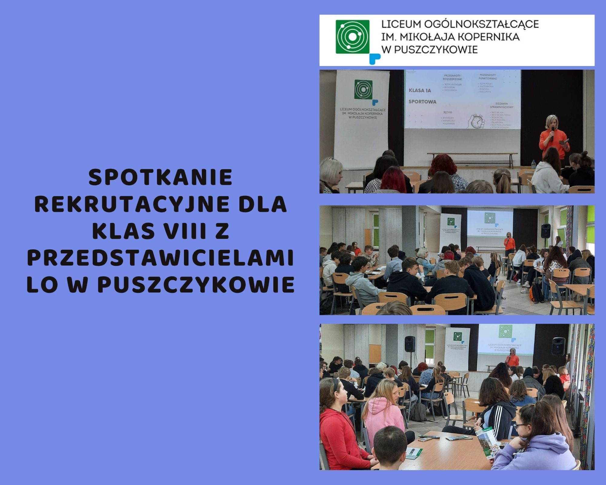 5 kwietnia 2022 przedstawiciele LO w Puszczykowie przyjechali do SP1 Mosina, aby zapoznać uczniów klas 8 z ofertą szkoły na nowy rok szkolny. Uczniowie stojący przed decyzją dotyczącą wyboru szkoły, chętnie uczestniczyli w spotkaniu. Proces rekrutacji i wybór dalszej ścieżki kształcenia i edukacji jest bardzo trudny, dlatego wszystkie zajęcia podnoszące wiedzę na temat szkół ponadpodstawowych są bardzo cenne i przydatne.