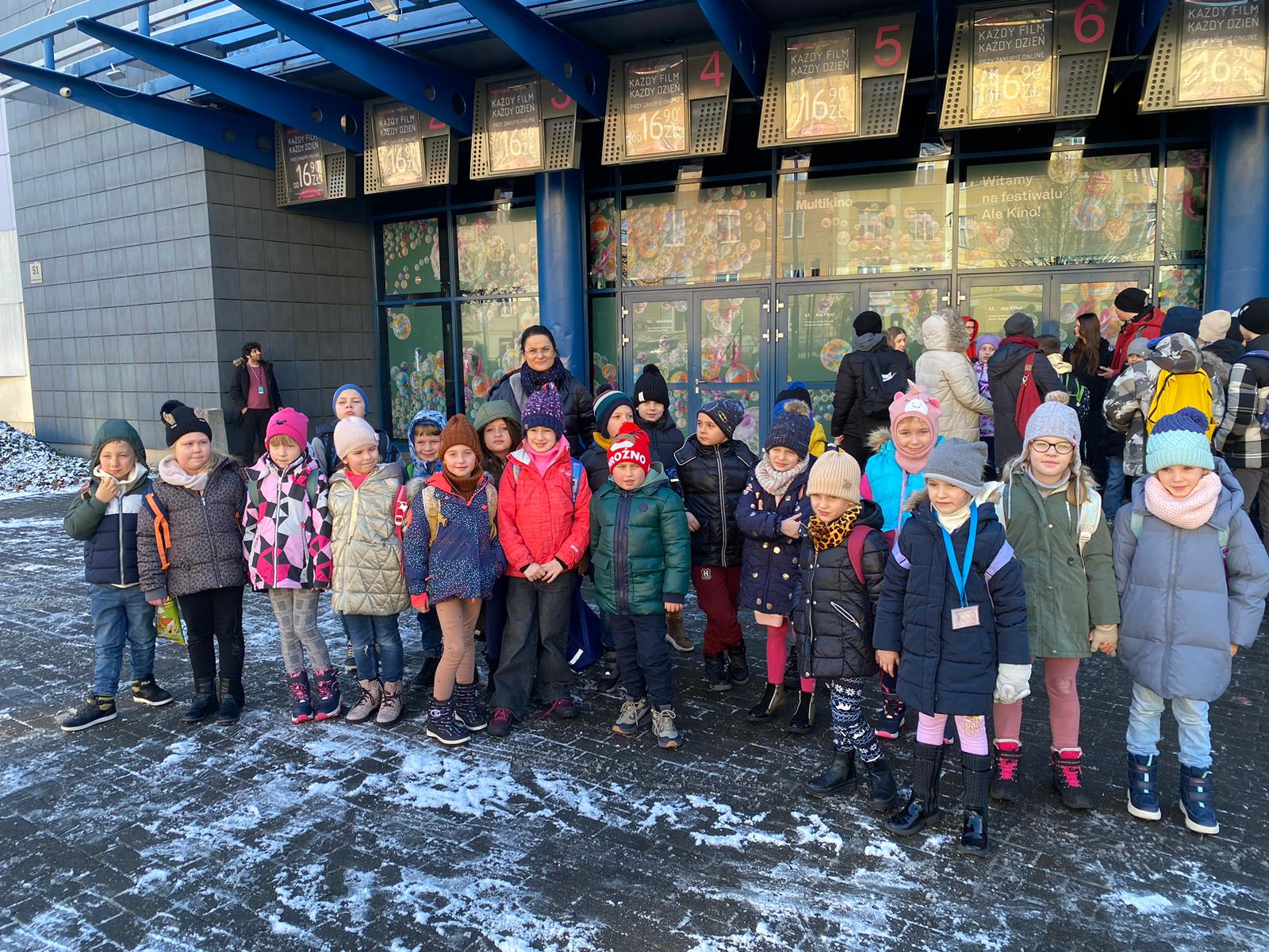 Z samego rana klasy 1a, 1b, 1c wyruszyły na wycieczkę autokarową do Poznania, a dokładnie do Multikina. Lulabaja miał po raz kolejny zaszczyt zaprosić młodego widza na jedyne w swoim rodzaju widowisko teatralno – filmowe. Uczniowie spotkali się z Profesor Mądralą Mądralińską i posągiem Andrzejem, którzy w zabawny i bardzo obrazkowy sposób opowiedzieli o tańcu. Nie zabrakło zagadek, wspólnego tańczenia i wyśmienitej zabawy. Spektakl przeplatany był projekcją fragmentów filmowych, które arcyciekawą treść dopełniły żywym obrazem. Odsłonił też paletę barw jakimi mieni się taniec i udowodnił, że jest on nierozerwalny z nasza kulturą oraz wspaniałą formą komunikacji swoich uczuć. Spotkanie zakończyło się projekcją filmu pt. „Kumple z dżungli”. Uczniowie jednogłośnie uznali, iż wyjazd był wspaniałym spotkaniem teatralnym, jak ciekawą lekcją o przyjaźni.