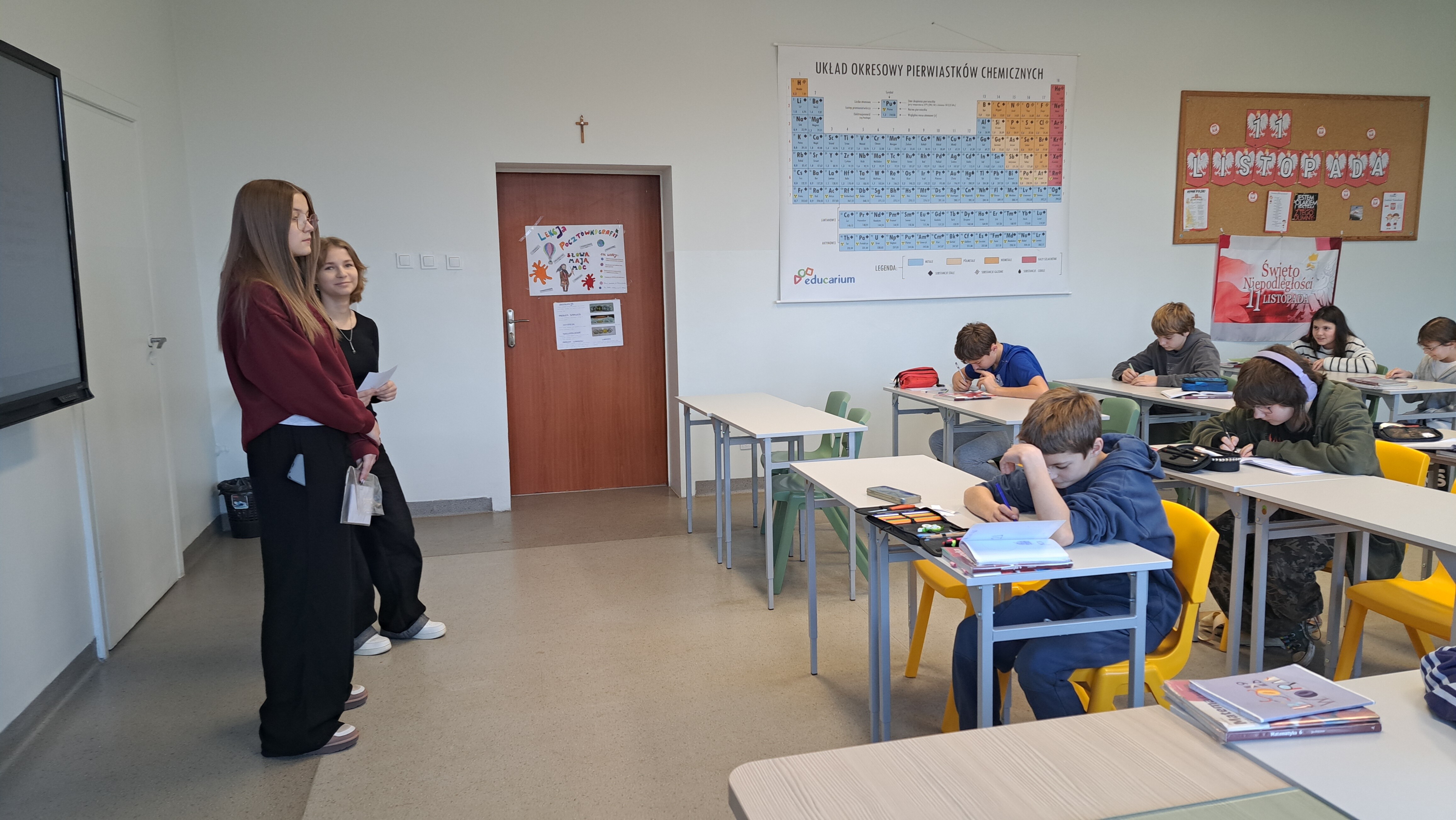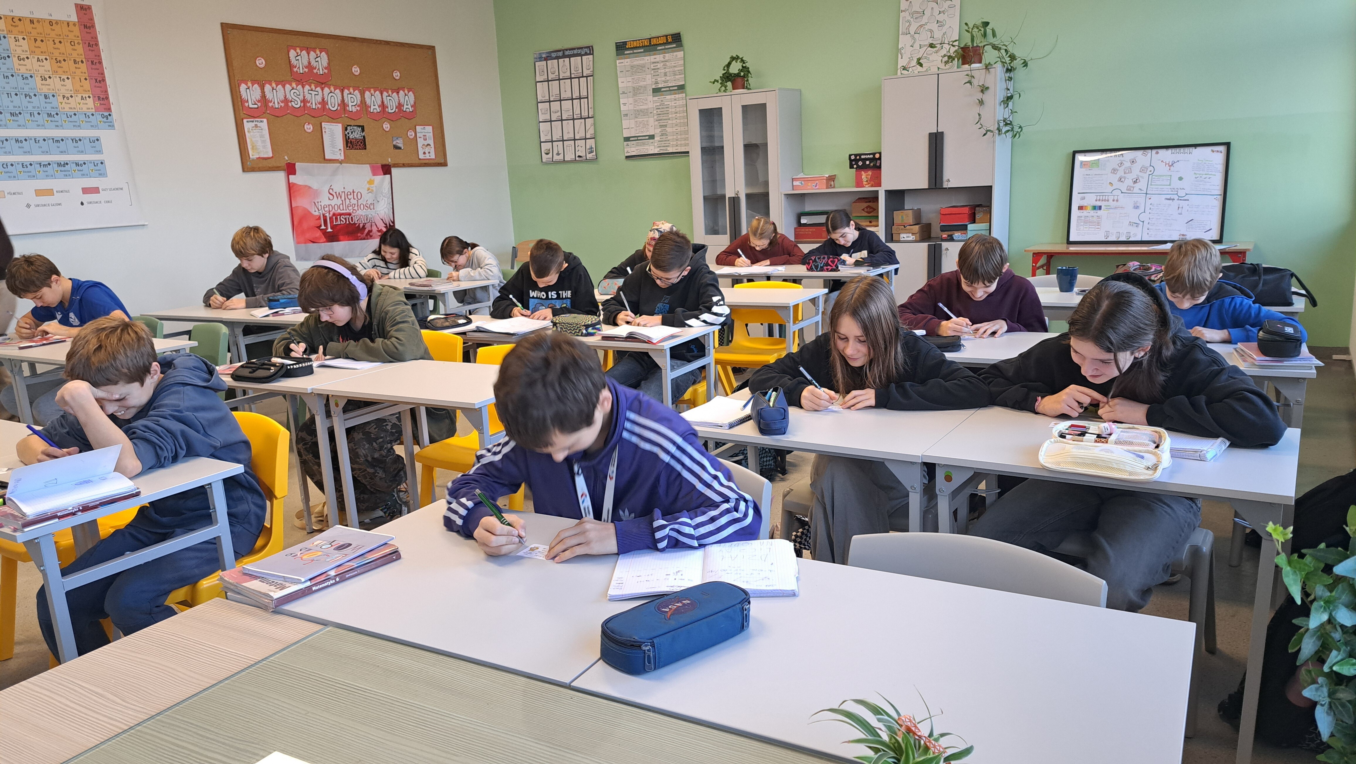 W piątek 21 listopada br., jak co roku nasza szkoła wzięła udział w XV Światowym Dniu Tabliczki Mnożenia. Uczniowie klas ósmych zamienili się w egzaminatorów i sprawdzali znajomość tabliczki mnożenia wśród uczniów klas 3-6. Podczas lekcji każdy uczeń miał możliwość sprawdzić swoje umiejętności. Następnie osoba, która wykonała zadania poprawnie i najszybciej zakwalifikowała się do kolejnego etapu. Kolejnym etapem był konkurs na Mistrza Tabliczki Mnożenia, który odbył się za pomocą platformy Kahoot. Każdy uczeń został poproszony, aby pojawił się wraz ze swoim wychowawcą. Uczniowie rywalizowali ze sobą na poziomie klas oraz wybieraliśmy również najlepszego nauczyciela ze znajomością tabliczki mnożenia. Uczniowie klas 4-6 mieli również dodatkowe zadania podczas lekcji matematyki. Wykonywali stacje zadaniowe związane z tabliczką mnożenia. Zabawa była ciekawa i wrócimy do tematu za rok.